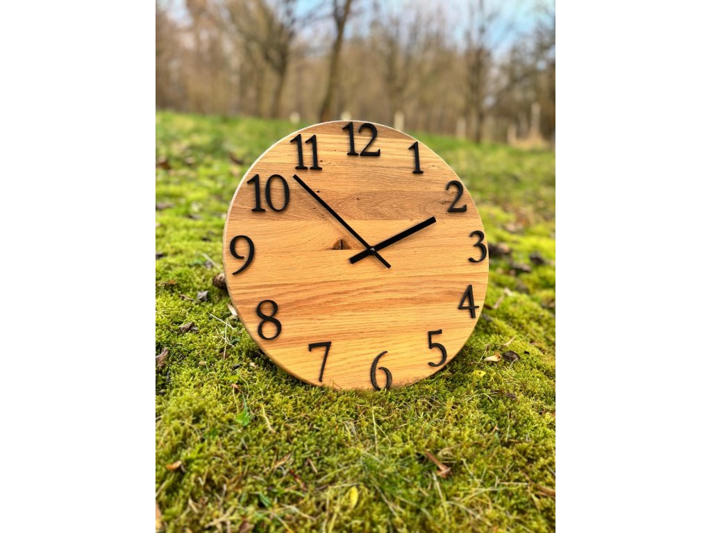 Dubové hodiny s černými číslicemi vynikají přirozenou krásou dřeva a přehledným ciferníkem, který se hodí do každého interiéru.
